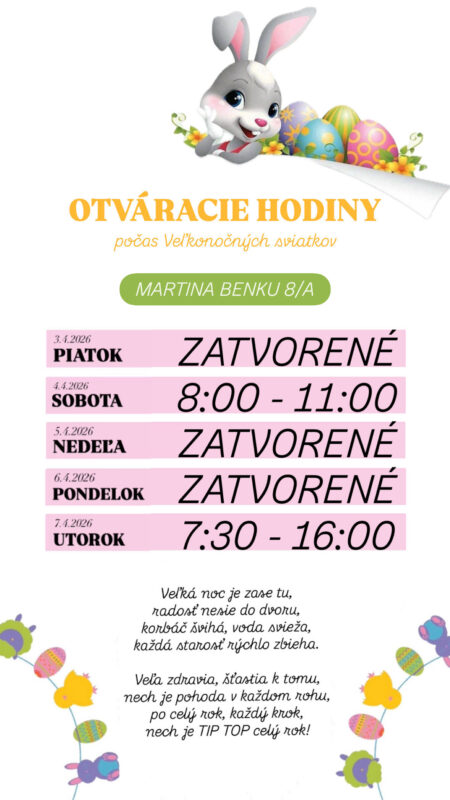 Predajňa M. Benku: 0918 119 315, objednávky do 9:00h !