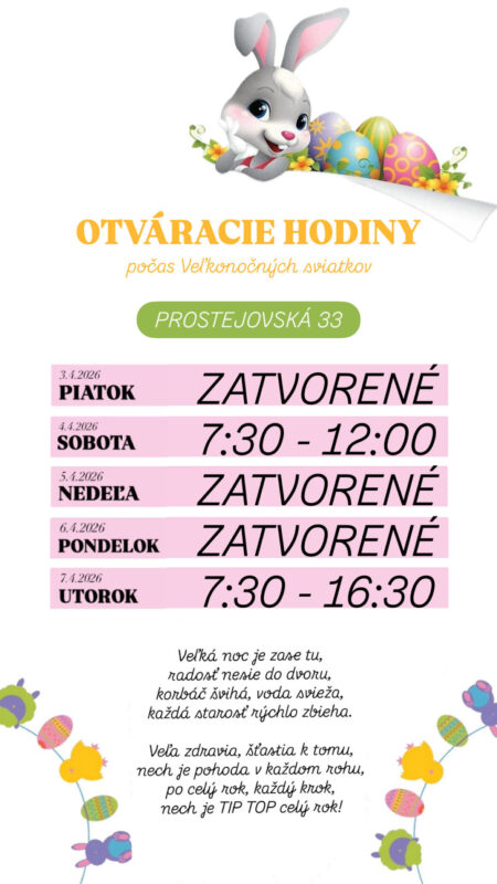 Predajňa Prostejovská: 0905 353 075, objednávky do 9:00h !